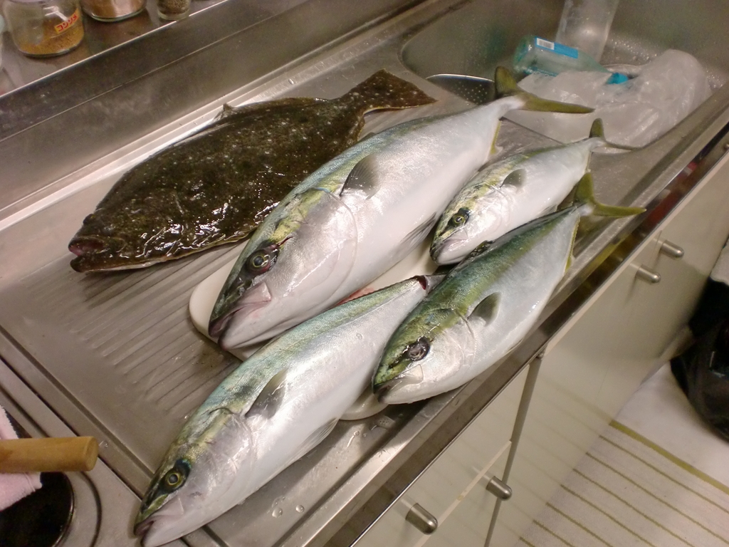 はいっ!お土産全員集合!我が家ではヒゲが毎回魚を捌きます!疲れてるとか関係なしっ!