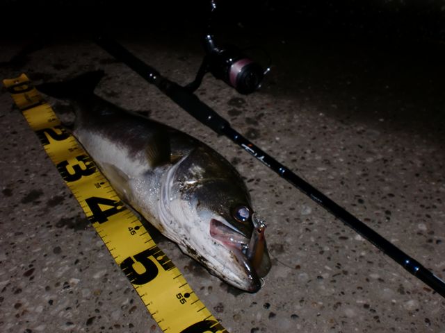 この時期は表層に群がるイナを捕食しようと真夜中に激しいボイルが起こったりと、アングラーなら