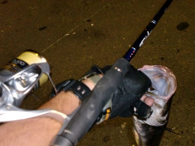 せっかくなので自分持ちでタックルが入る様に一枚パシャリ!やっぱり何回釣ってもシーバス