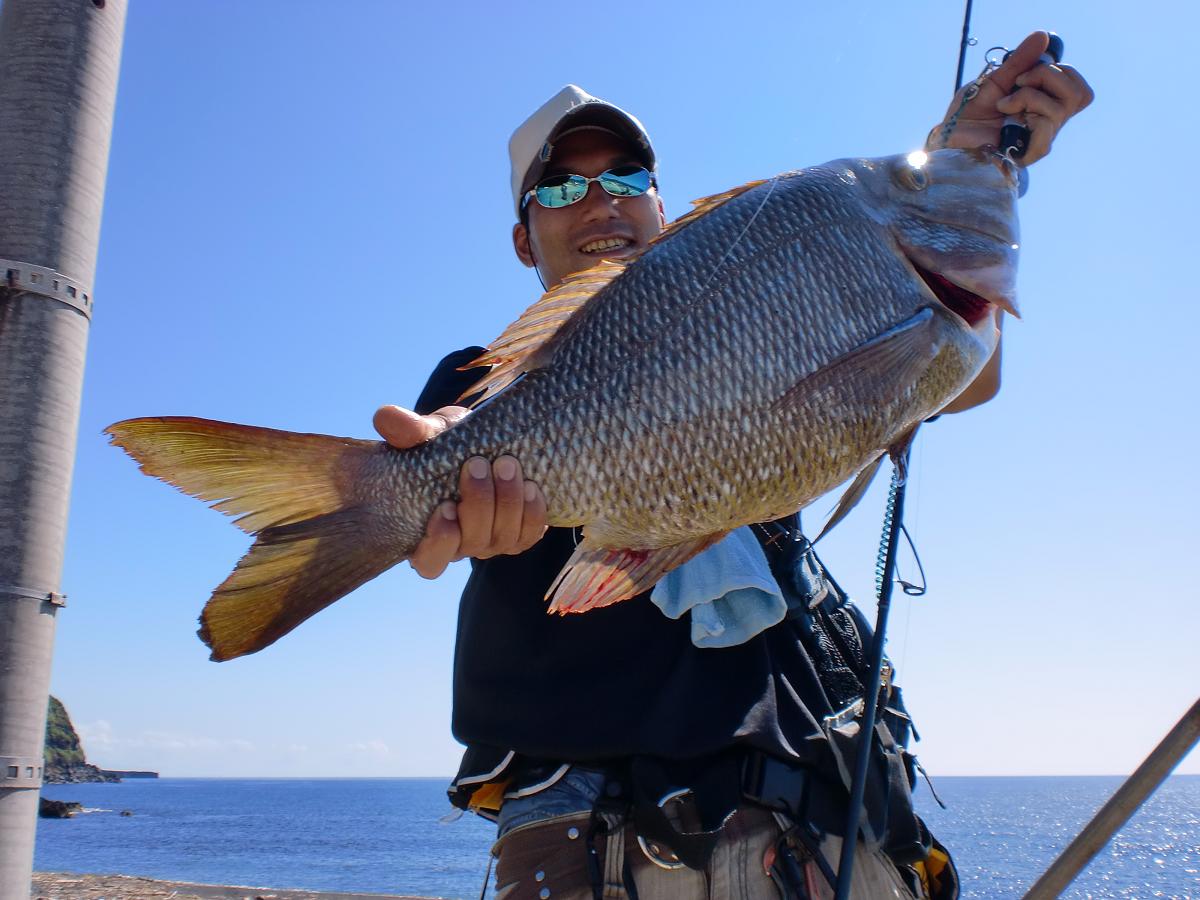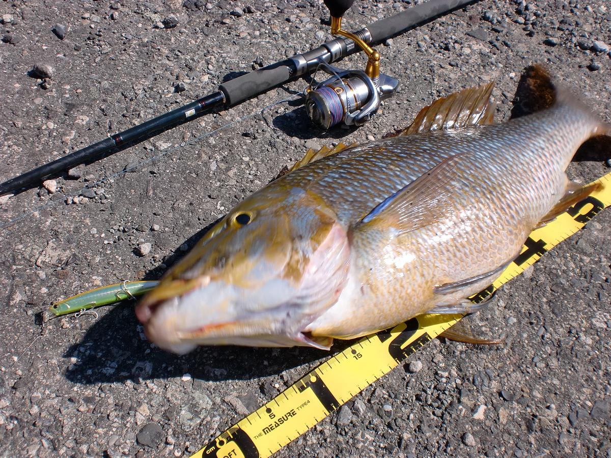5.2kg、72cmのハマフエフキダイ、沖縄の方ではタマンと呼ばれる魚でした!!!