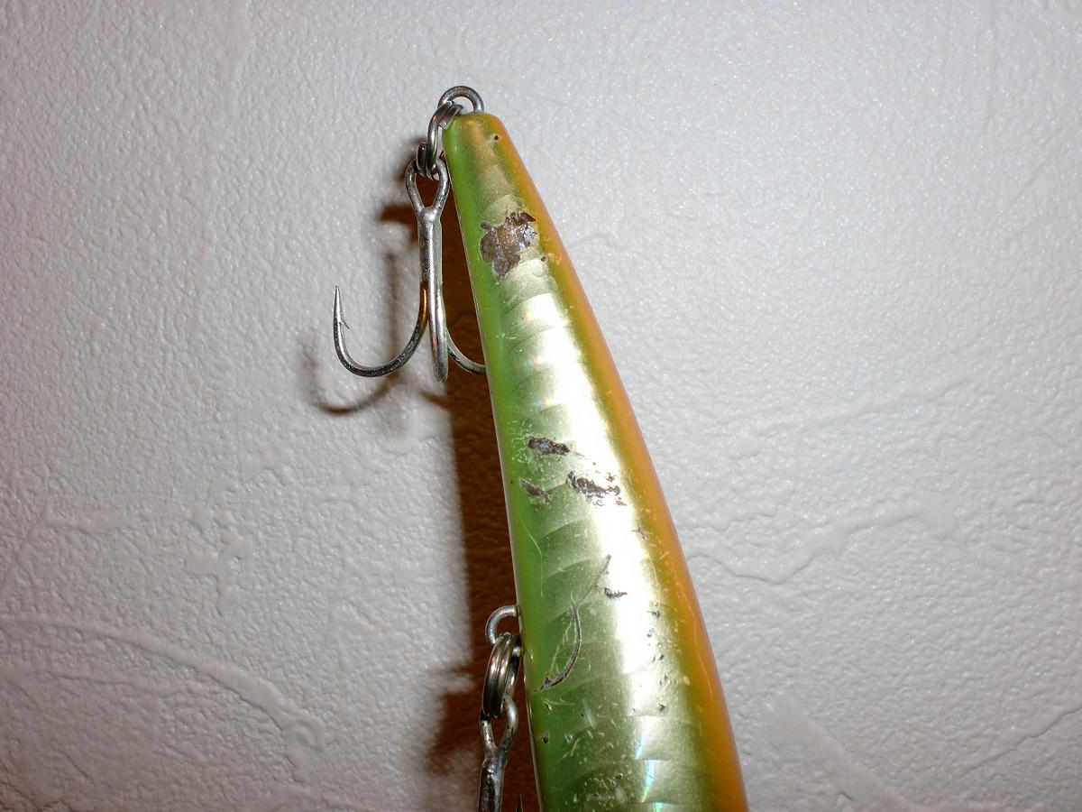 キャッチした時は一番下のスプリットリングは伸びてたのではなく『噛み潰されてました』