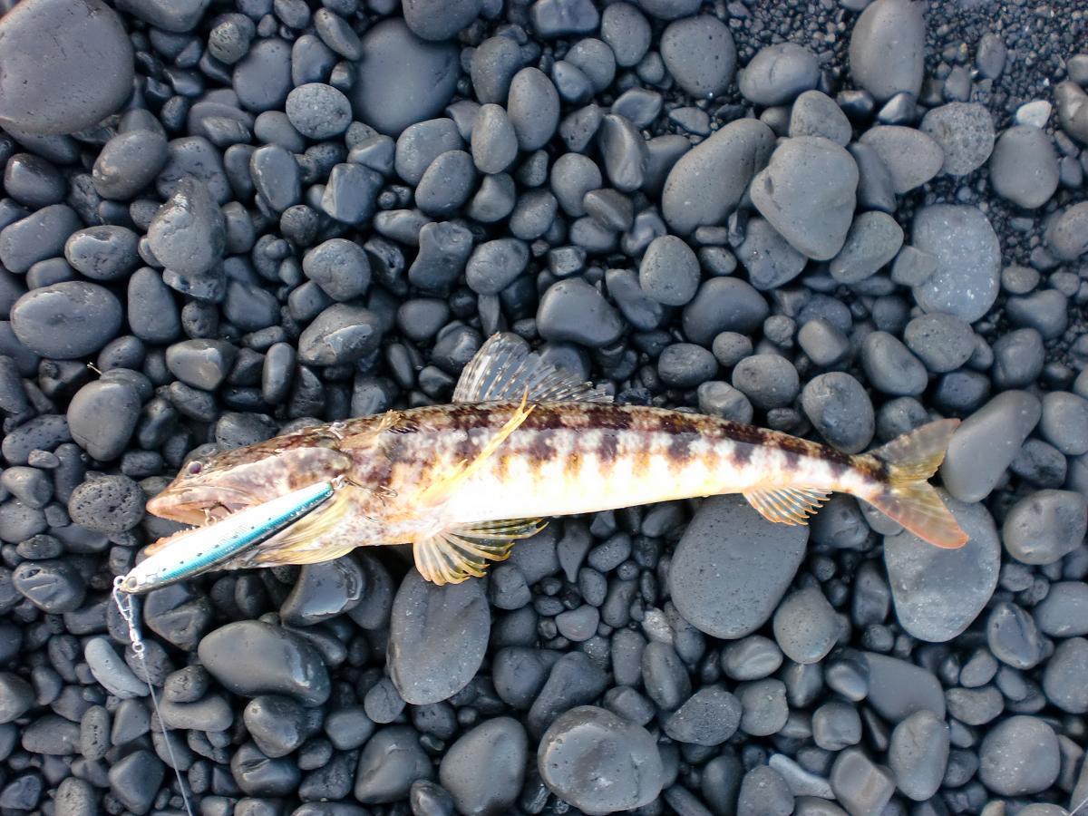 三宅島で初めてキャッチした魚は『エソ』でした!この魚は島の周りでどこにでもいるらしく