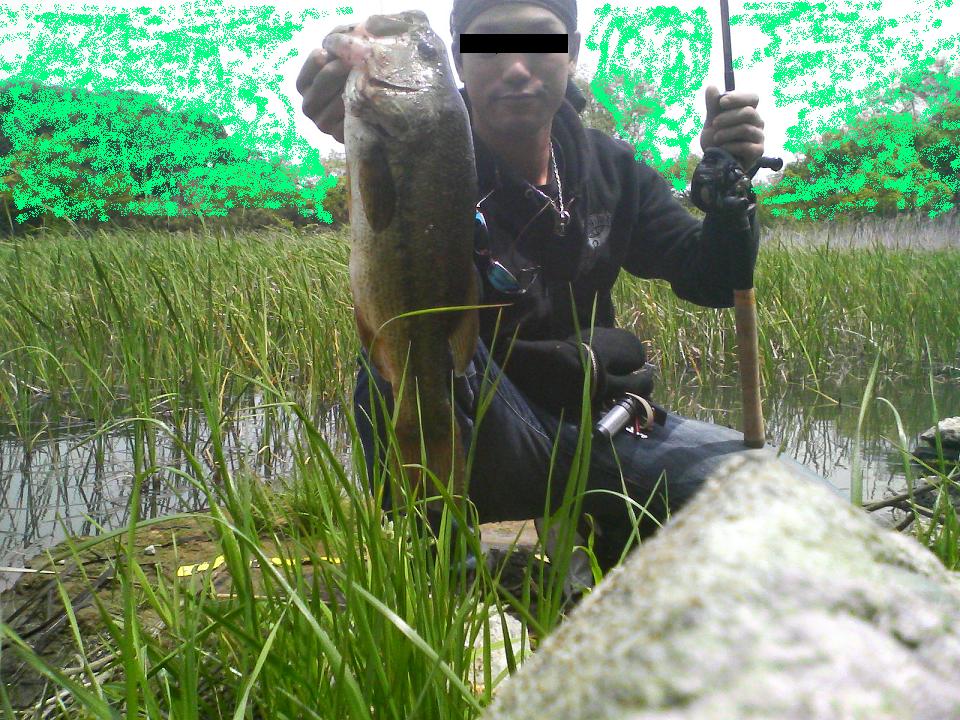 フロッグをセットしつつアシの覆い茂る所へ歩いてる途中・・・・でかっ!バス見っけ!